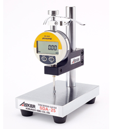 JIS K 6250 A法に準拠した板状試験片(ダンベル状試験片)および円柱状試験片(圧縮永久歪試験片)兼用のデジタル測厚器です。